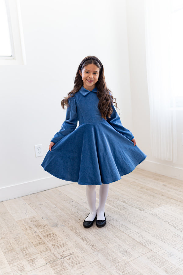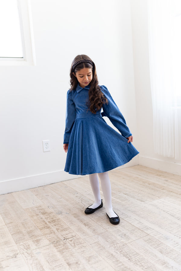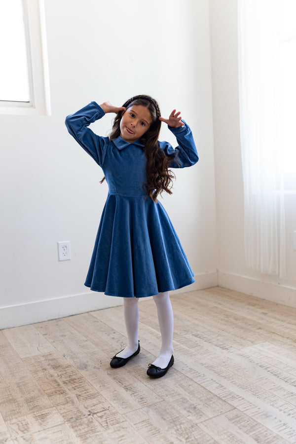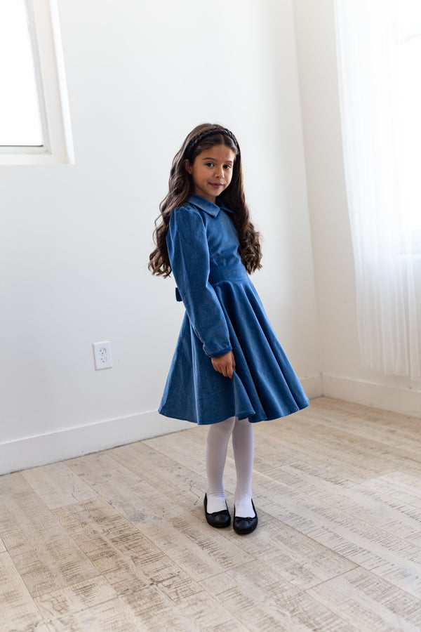 This stunning antique blue velvet twirling girl's party dress will be your go-to for special occasions.