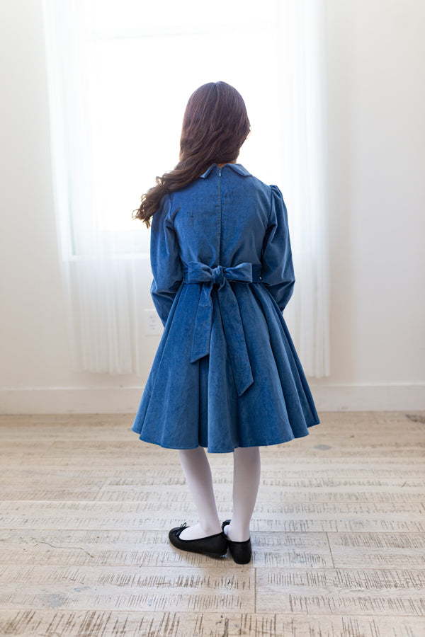 The perfect party dress, our fabulous blue velvet girl's dress will make her feel glamorous on those special school days, at holiday celebrations, or any other "royal gathering" you might be attending this winter season.